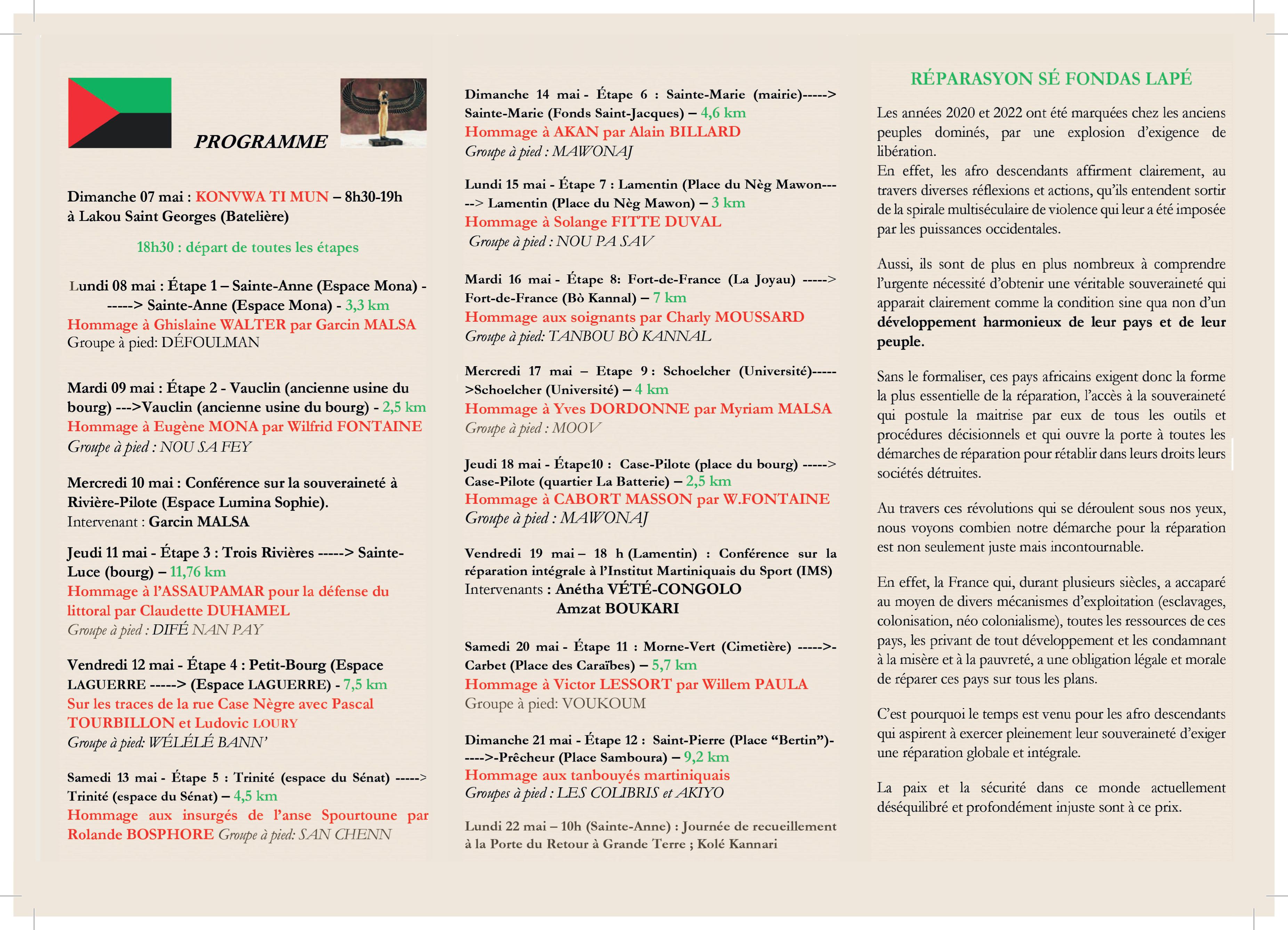 Cette année le 23zième Konvwa ba Réparasyon aura pour thème "Réparasyon sé fondas la Pé".